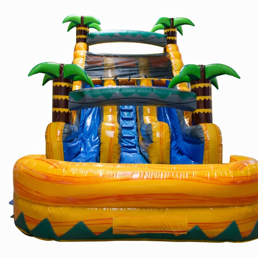 The Banana Split 18 Ft Dual Lane Waterslide is a fast, fun, and safe centerpiece for summer parties, backyard events, and community gatherings. This dual lane water slide lets two racers go head-to-head. It stands 18 feet tall and finishes in a deep splash pool that keeps the fun going. Perfect for kids, teens, and adults who want a thrilling, competitive ride. 😄🏁