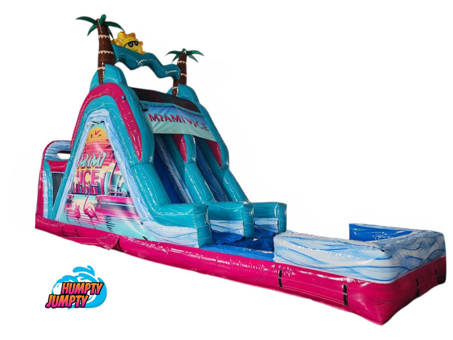 Ready to make a splash? Contact us to reserve the Miami Vice Dual lane 18 ft Slide for your next event. Fast booking. Memorable experiences. 🌊🏖️